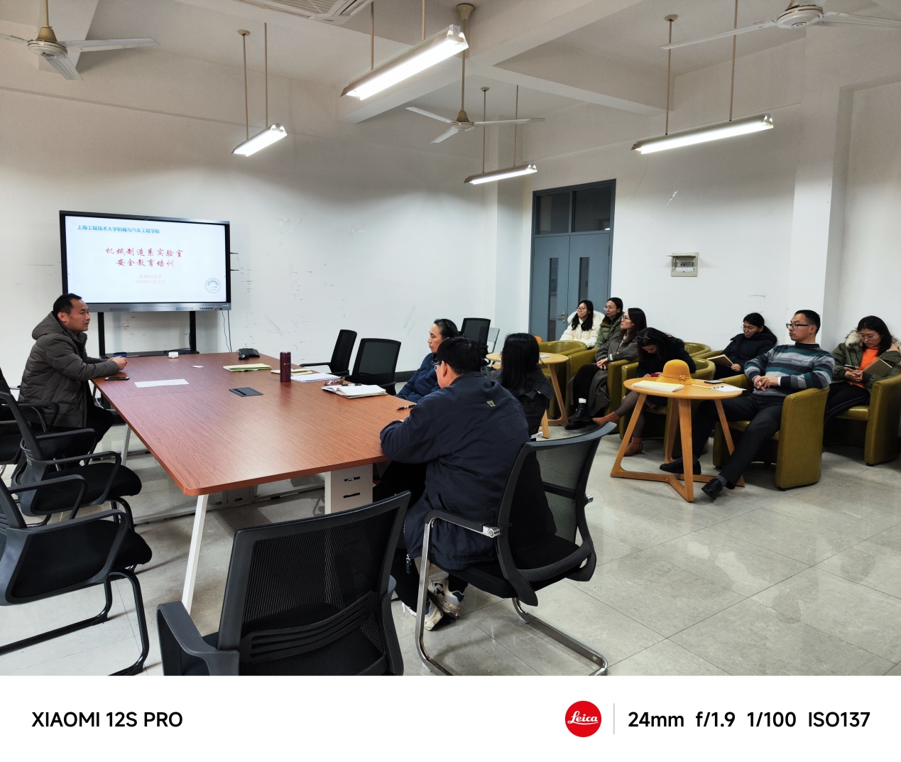 为提升系室师生安全意识,学习大型仪器设备共享平台使用。1月12日,机械制造系在实训楼4207会议室举办实验室安全培训和大仪设备共享使用培训会,会议邀请学院实验中心马西沛主任和徐华源老师做讲座,机械制造系全体教师出席本次培训会。