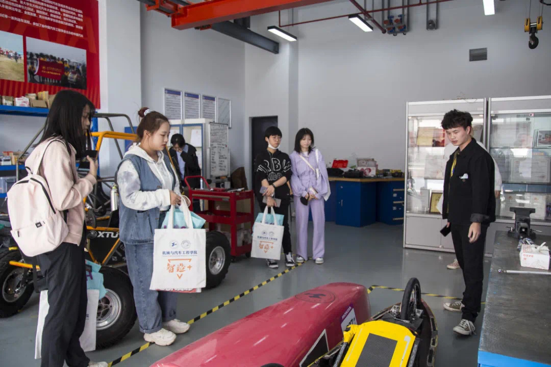大学生创业基地的负责人向新生详细介绍了节能车、巴哈车等车型,引得新生的驻足观看。在学长绘声绘色的讲解和展演中,新生对学院的特色竞赛和实验室有了更深的了解。带领新生感受到在这个孕育着一代代机汽人追梦的种子的小小的实验室里背后的汗水和成功的喜悦。不仅展现了学院师生的竞赛风采也向新生勾勒出一幅丰富多彩的学习蓝图。