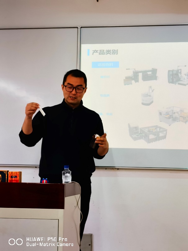 课程后段,朱亚明工程师还设计了互动环节,对老师和同学们所提出的问题进行了详细的解答。朱亚明工程师还带来了企业的包装产品,包括烟条、烟盒、和包装商标,引起了同学们极大地好奇心,最后将包装商标送给了同学们。