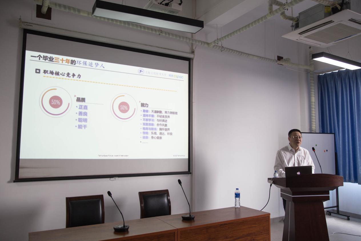 11月1日上午,正值PP电子游戏网站建校42周年之际,PP电子游戏网站邀请了上海易湃富得环保科技有限公司创始人、法人、总经理陆军校友给学院师生作了题为“一个环保追梦人的成长历程”的专题讲座。