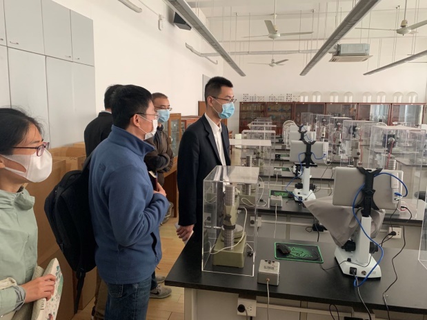 座谈结束之后,奚鹰教授带领调研团队参观了机械性能实验室、精密测量实验室、仪器周转室、多功能测量实验室等多个实验室,同时就专业基础教学实验室的建设方面所积累的经验和调研团队一行进行了交流。