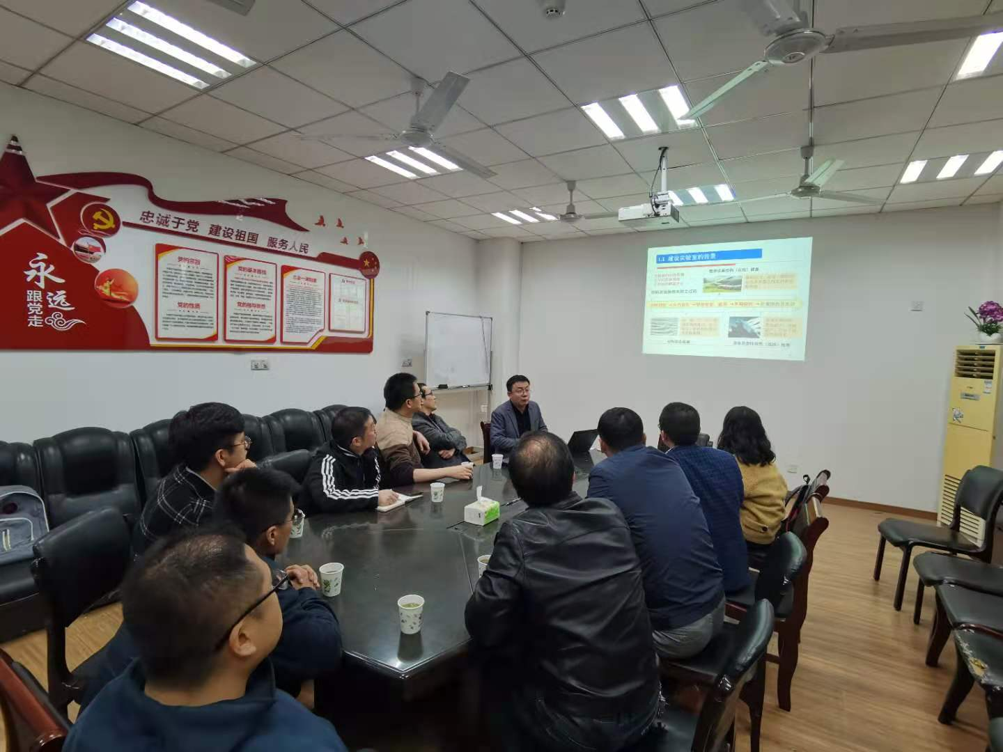 参观结束后,双方开展了进一步地学习交流,南航重点实验室主任王平老师就实验室研究领域、师资情况、研究生培养等作了相关介绍,周志峰主任介绍了PP电子游戏网站的发展历史、机汽学院发展情况,以及机电系师资、科研、研究生培养等方面。最后,双方就党建、教学、科研、研究生、系室及实验室管理等进行了热烈的交流与互动。
