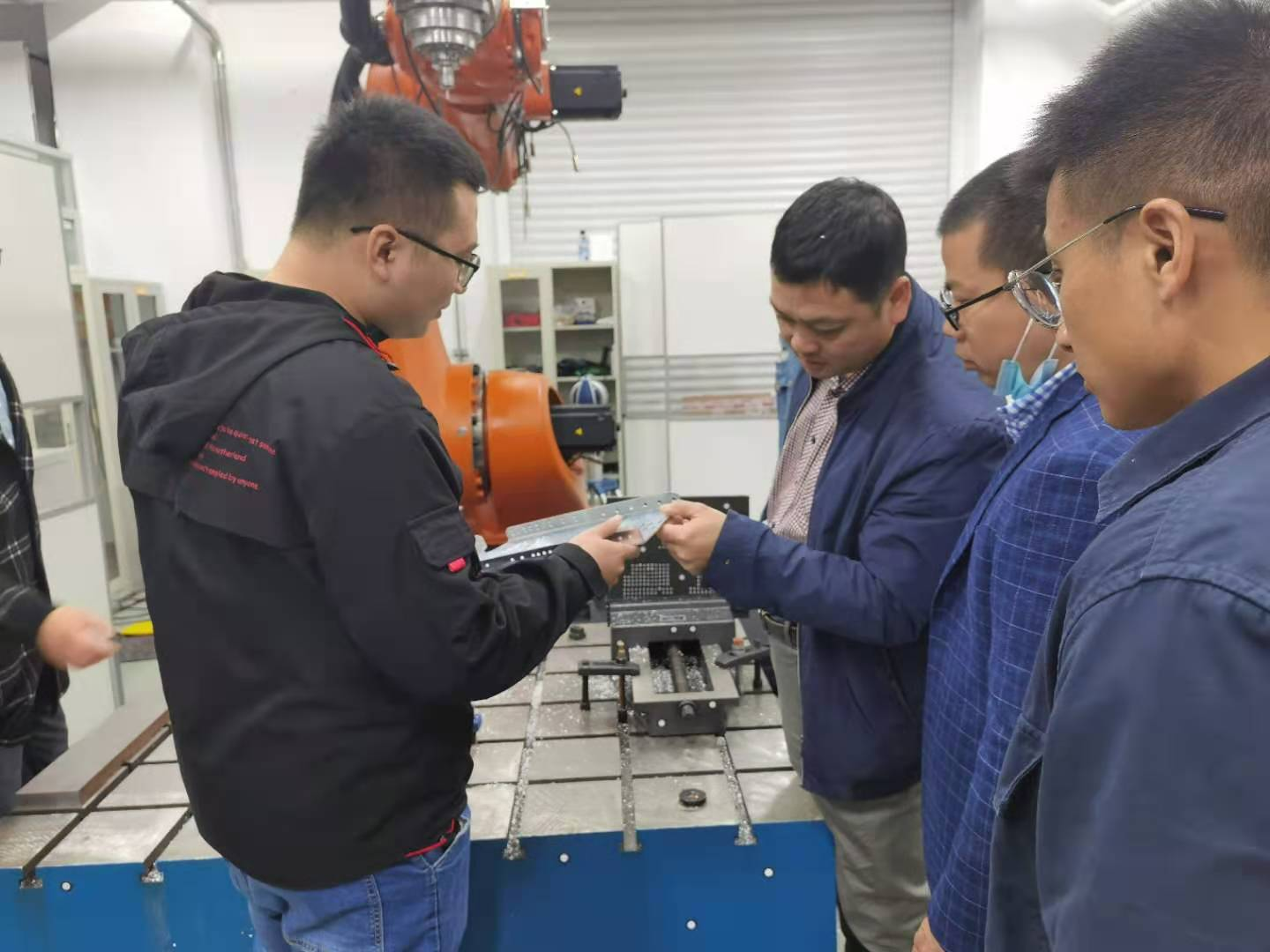 11月21日上午,调研团队首先来到南航机电学院,参观了飞机零部件加工、机器人钻孔、自动化铆接等高端装备,老师们对加工工艺、加工装备等感兴趣的领域进行了探讨与交流。