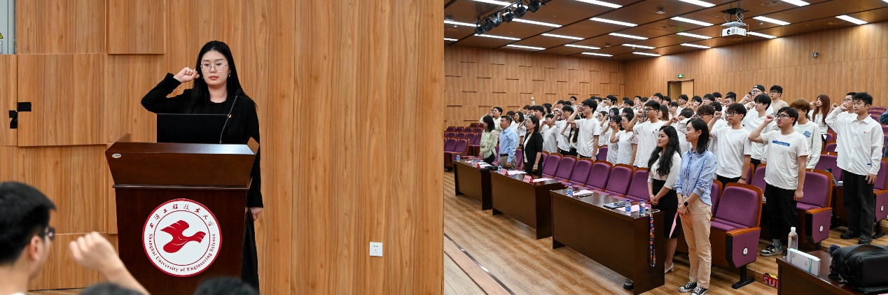 仪式最后,全体志愿者在学院团委副书记刘苗苗老师带领下进行了庄严的宣誓,表示将在服务工作中践行“奉献、友爱、互助、进步”志愿精神,在世界舞台上为学校争光、为祖国添彩。