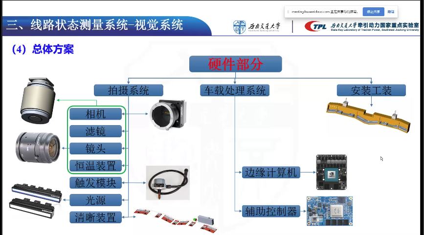 丁建明教授首先阐述了轨道与车辆智能运维的总体架构,从轮轨系统的智能运维出发,以线路和车轮状态测量系统为切入点,介绍了轨道运维策略技术。在讲解线路状态测量系统时,丁教授的团队着力于智能巡检系统的研发,团队解决了从相机、光源的类型与数量,到设备的布置和安装姿态等多个技术难题。同时,他们的团队确定了相机的触发方式、恒温控制方式、清洗模式及工装的外形和密封性能。这些研究成果大大提高了设备的稳定性和检测精度以取代传统的巡道工作,大幅提升了生产效率,视景检测系统也能够自动检测轨道病害图像,处理相关信息,并建立轨道信息化档案。