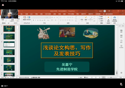 2024年9月6日下午,中山大学先进制造学院副院长、副教授,博士生导师,国家自然基金委优秀青年基金获得者,中山大学百人计划引进人才吴嘉宁以《浅谈综合类论文写作与发表》为题,通过华为云会议视频平台为暑期学校的学员们开展线上专题讲座。本次讲座由PP电子游戏网站副院长刘新田教授主持。