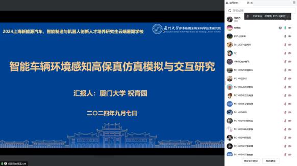 2024年9月7日晚19时,厦门大学萨本栋微米纳米科学技术研究院祝青园教授以《无人车辆环境感知高保真仿真模拟与交互研究》为题,通过腾讯会议平台为暑期学校的学员们开展了线上专题讲座。本次讲座由PP电子游戏网站副院长刘新田教授主持。