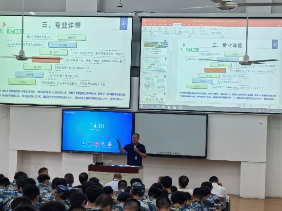张海峰老师首先向新生介绍了系室基本情况,并一一介绍了与会教师,接着分别介绍了机械工程和智能制造工程两个专业的培养计划、发展沿革、专业建设成效、实践基地以及就业情况,使同学们对所在专业有了更加详细和直观的认知。他希望同学们在后续学习生活中,加强与导师的沟通与交流,明确学习目标,珍惜时间,努力掌握专业理论知识,提升实践本领。