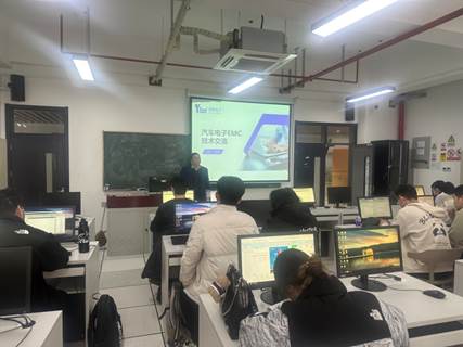 12月3日上午10:00,上海音特有限公司的专家肖南海总工程师,受邀于现代交通中心8B313,以企业专家的身份走进《新能源汽车技术实验》课堂与师生们进行交流。授课内容聚焦于新能源汽车电子EMC检测技术,为汽车服务工程专业的同学开展了一场精彩的实际案例教学。此次交流活动加强了校企合作、促进产教融合、提高学生的综合能力。