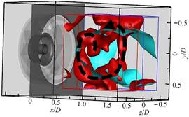 Fig.2 3DreconstructionoflowerorderPODmodeforTomo-PIVusingiso-surfacesofQ=0.15s-1(red)