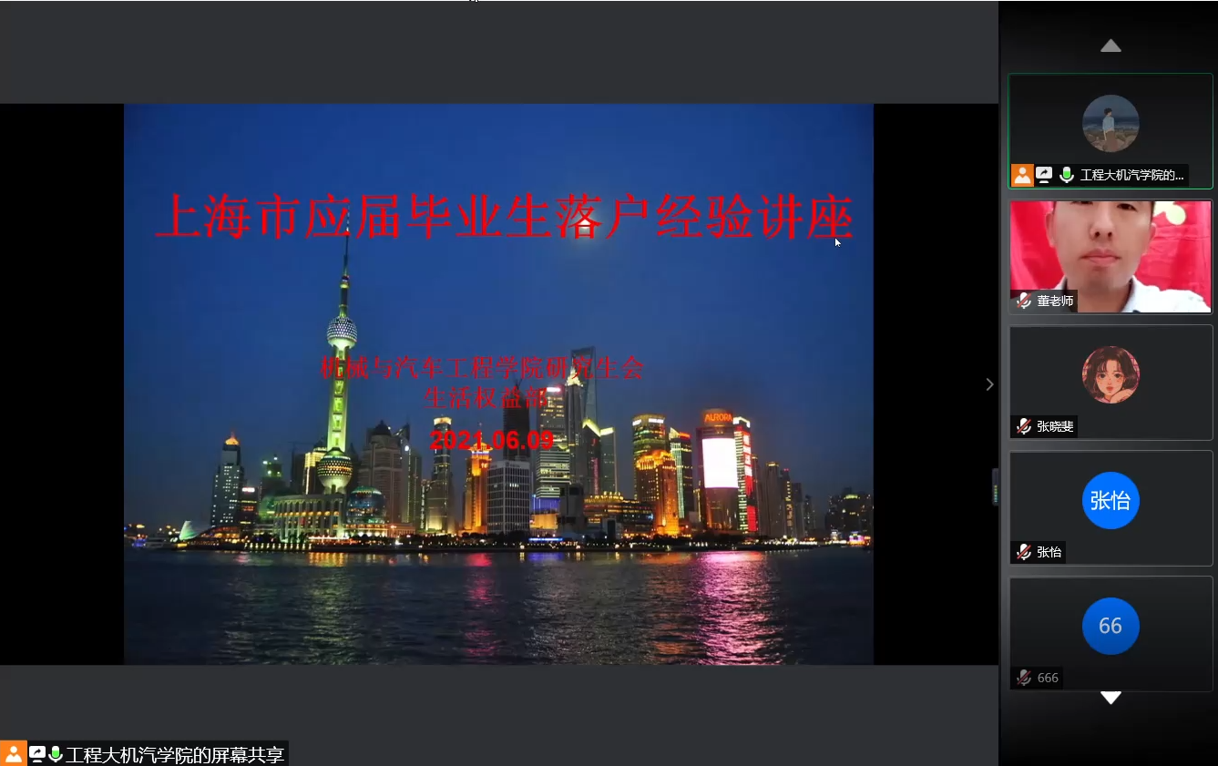为了帮助学院有意向落户上海的毕业生同学们了解落户政策,知晓后续落户申请、落户批复等过程中需要注意的问题,PP电子游戏网站于6月9日晚上8点在线上腾讯会议室举办了上海市落户经验交流分享会。此次落户经验交流分享会是机设能源交通研究生联合党支部开展的“我为群众办实事”重要项目。本次活动邀请了去年毕业成功落户的孙观学长和杨云露学姐,他们为参会的毕业生同学分享了自己从准备落户材料到最后成功落户的具体细节和注意事项。