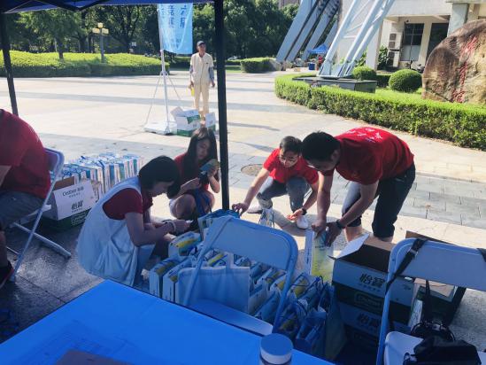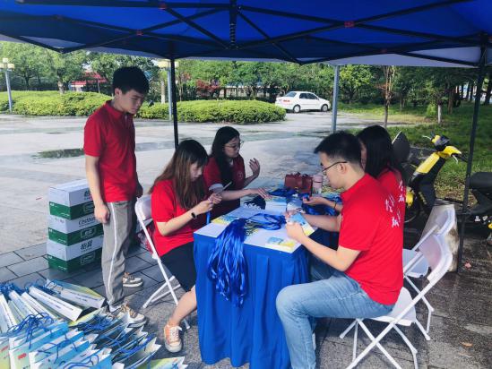 志愿者,冒着36度高温,身穿红色志愿者