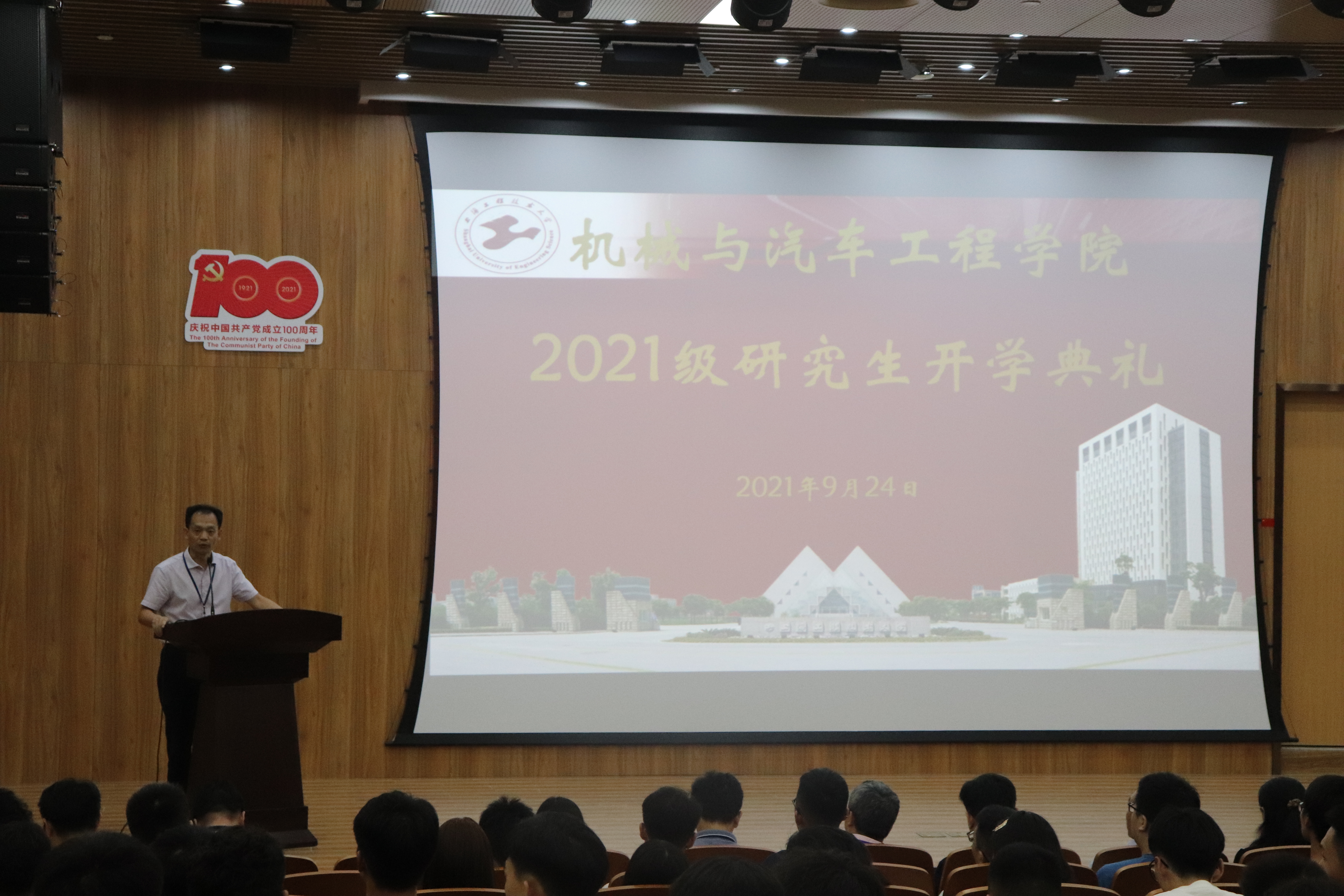 汽车工程系主任邢彦锋教授作为导师代表发言,邢彦锋老师给各位导师提出要因材施教,注重能力培养。并且对老师和同学提出要求:一是要不忘初心,牢记使命。树立正确的价值观,努力实现自己的人生价值;二是要尊师重教,教学相长。同学们要主动多向导师请教,不断提升自己学术研究能力,培养良好的科研氛围和团队精神;三是要勇于创新,激励前行。同学们要认真完成课程学习和学术研究,不断提高科学研究的能力和水平;四是要快乐学习,健康生活。鼓励同学参加学术讲座及实践活动,提升综合能力。锻炼身体,做到德智体美劳全面发展。