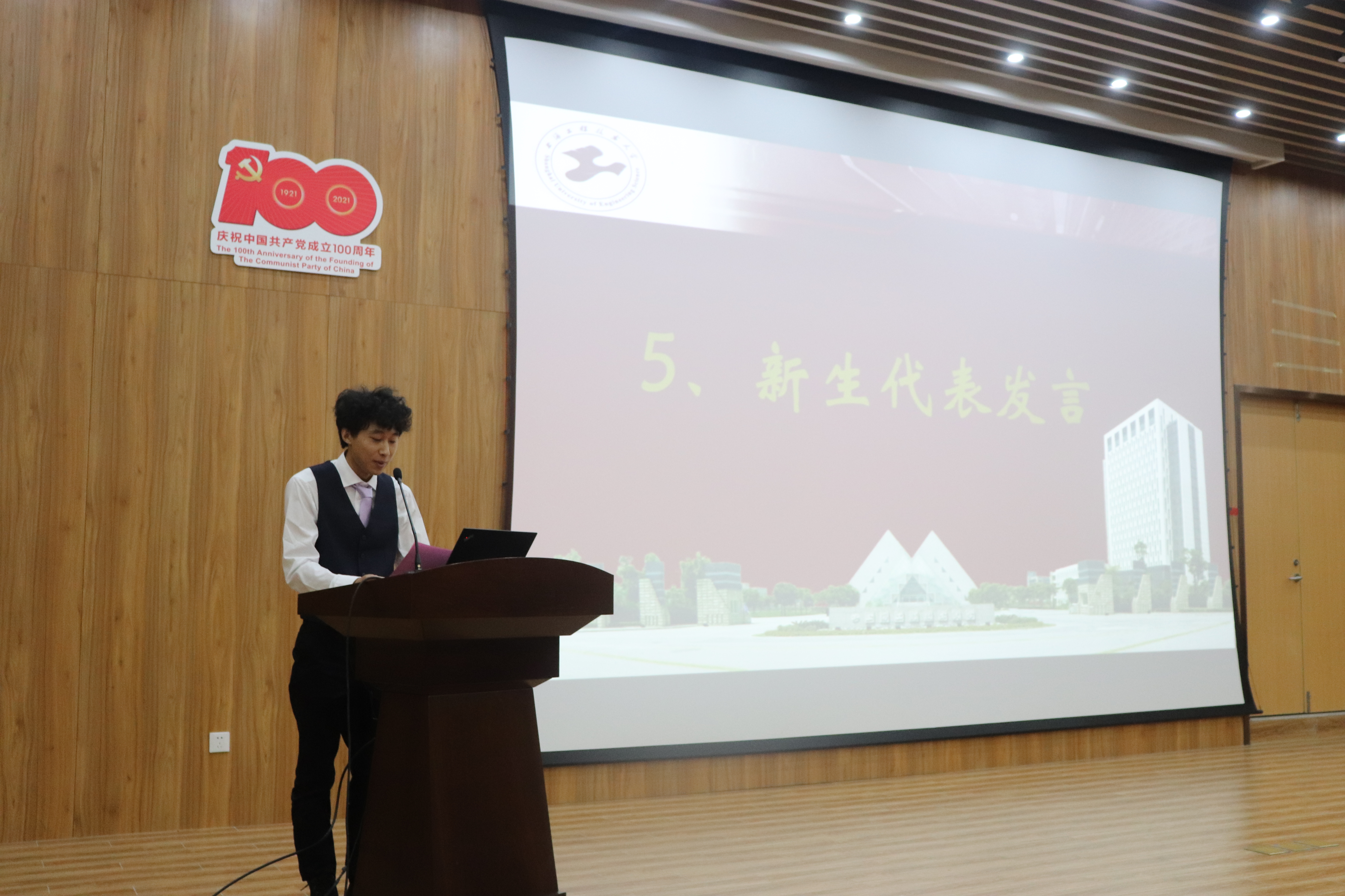 2019级老生代表王重羊和2021级新生代表张春岩同学发言。王重羊同学从调整思想状态,增强认识水平,要尽快进入研究状态几个方面分享了自己读研的心得体会;张春岩同学代表全体新生向学院领导们和老师们表示,在研究生期间,会努力做到求知为帆,实践是桅,思想作舵。将求知若饥、身体力行、思想端正合为一体。立志做一名合格的工程大人,为学院的发展贡献自己的青春力量。