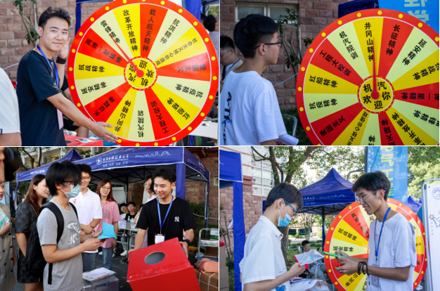 迎新过程中,迎新团队成员各司其职、各负其责,秩序井然流畅。一张张热情的笑脸,一句句亲切的问候,一项项贴心的服务,在学院老师与志愿者们的帮助下,新生们有条不紊地办理着入学手续,同时也积极地参加学院组织的各种活动。党史学习教育板块,学院精心设计的党史精神转盘解读活动,吸引了大量新生参与其中。通过党史小知识问答,让初心代代相传,把使命永担在肩。小小转盘承载了机汽人学思践悟不忘初心的希冀,也折射了机汽学子的自信与坦荡;红色基地打卡板块,通过展示学生们与家乡红色印记的打卡照片以及对祖国的祝福,汇聚来自祖国各地的红色文化,传承红色基因,激发新生们的爱国情怀;科创展示板块,展位上我院木鸢机甲战队自己设计制造的机器人、研究生团队四足机器人、迎宾机器人,大学生创业基地参观等活动对学院的特色竞赛和实验室有了更深的了解,对学生参与科创的热情起到了“第一课”的兴趣培养作用;校院认同板块,学院为新生设计学院特色文创产品——环保帆布袋、笔记本、定制专属饮品等,助力新生在程园开启新篇章;家校联动板块,特别为新生提供具有学校印记的明信片,让新生把进入工程大的体会和感受寄给父母、朋友和成长恩师,共同分享心中的喜悦。