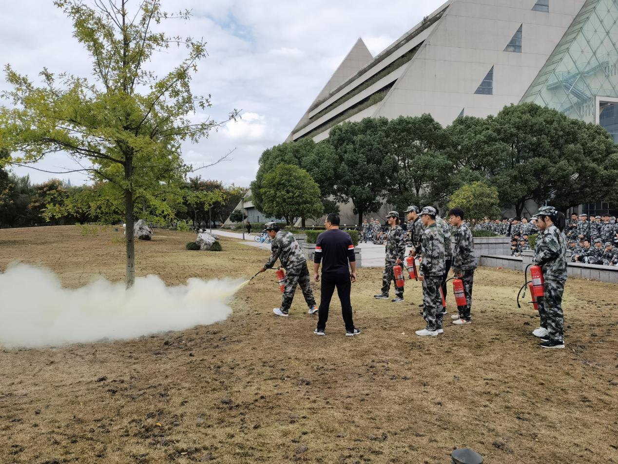 灭火器操作演练在博学广场举行。校保卫处吴挺老师向同学们介绍了各类灭火器的适用范围和灭火的基本知识,并现场演示了手提式干粉灭火器的使用。同学们随后进行了灭火实战操练,亲身体验灭火过程。