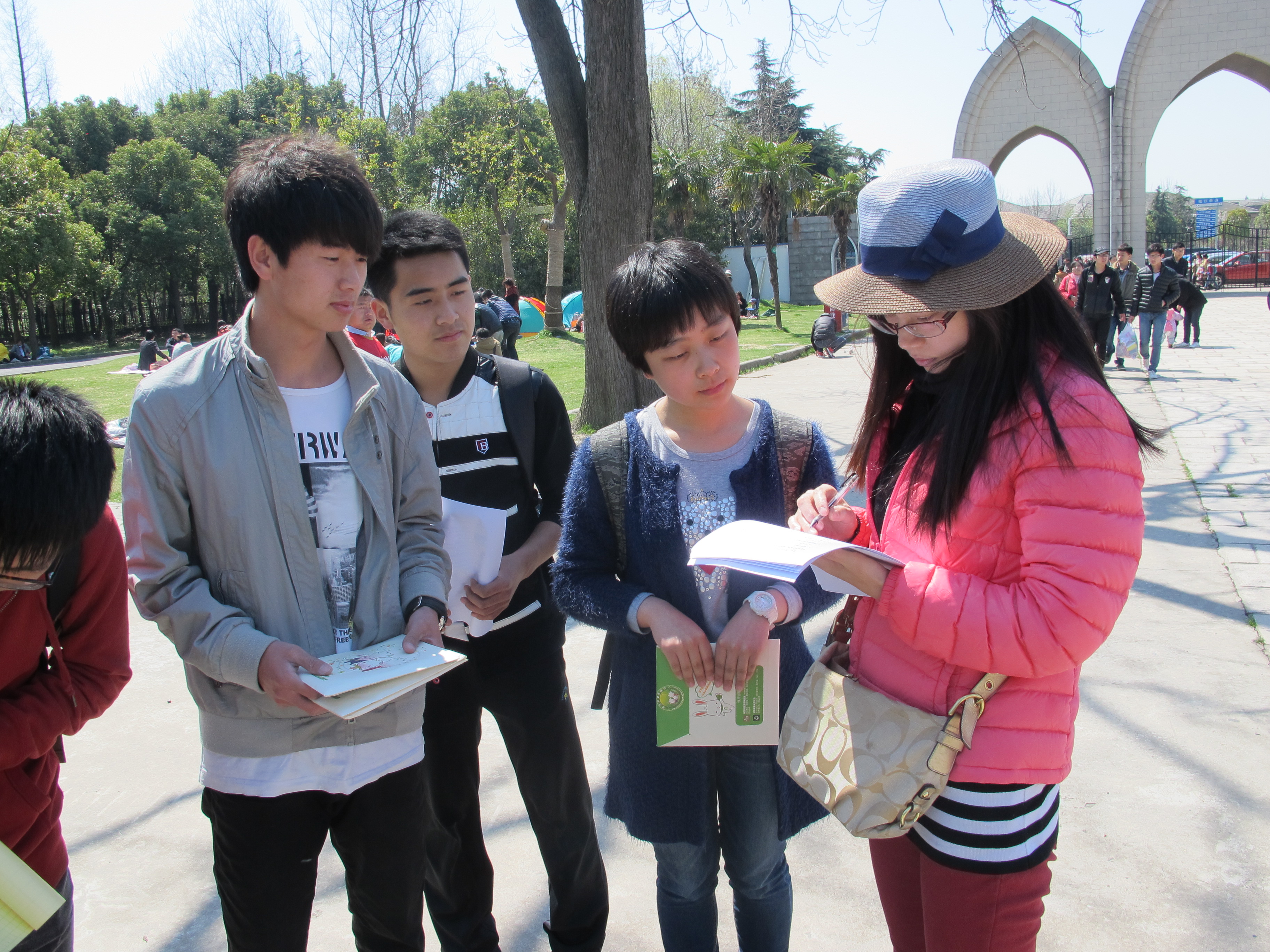 接力第一站是立信会计学院,接下来分别是上海视觉艺术学院、上海对外经贸大学、上海外国语大学、东华大学、PP电子游戏网站,以及最后的华东政法大学。在华政的集结与拍照留恋后,大家就向各自的目的地进发了。我们工程大的绿茵社来到了佘山森林公园,展开了我们本次的主题活动:“世界水日,中国水周”。绿茵社的成员们向公园门口的市民征集了签名,对公益给出一份支持,让公益更有意义。还有提前设计并准备好的关于节能环保的调查问卷,相信可以给大家更多的启示。本次活动有不少的小朋友也参与其中,很多家长也乐意让小孩子来参与这样的活动,通过耳濡目染来感受绿色环保,来传递我们的正能量。