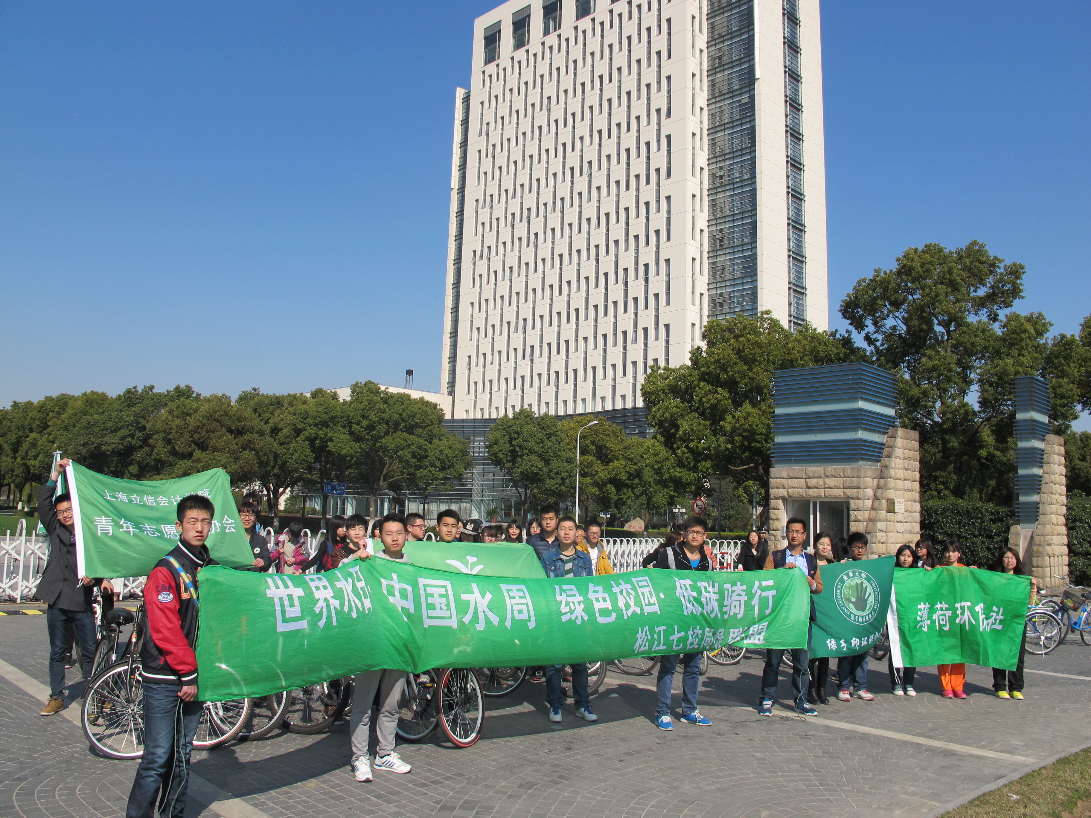 3月22日,是世界水日,为了唤起公众的节水意识,加强水资源保护,机械工程学院分团委在校内外开展了“世界水日,中国水周”活动,此次活动是继上次“节水节电节能源,爱树爱草爱校园”绿色主题活动后“绿色梦,我行动——绿色校园,低碳骑行”主题活动月的又一主题活动,其由我校机械工程学院分团委学生会主办,绿茵节能环保社承办,松江七校同绿联盟等共同参与。同绿联盟的各组织成员早上8点集合,各学校的绿色组织都带上自己的社旗,进行了接力仪式。在接力骑行以后同绿联盟成员们分为了三支队伍。工程大和华政向佘山前进,立信、视觉和外贸则去了泰晤士小镇,东华和上外骑向了松江中心绿地。