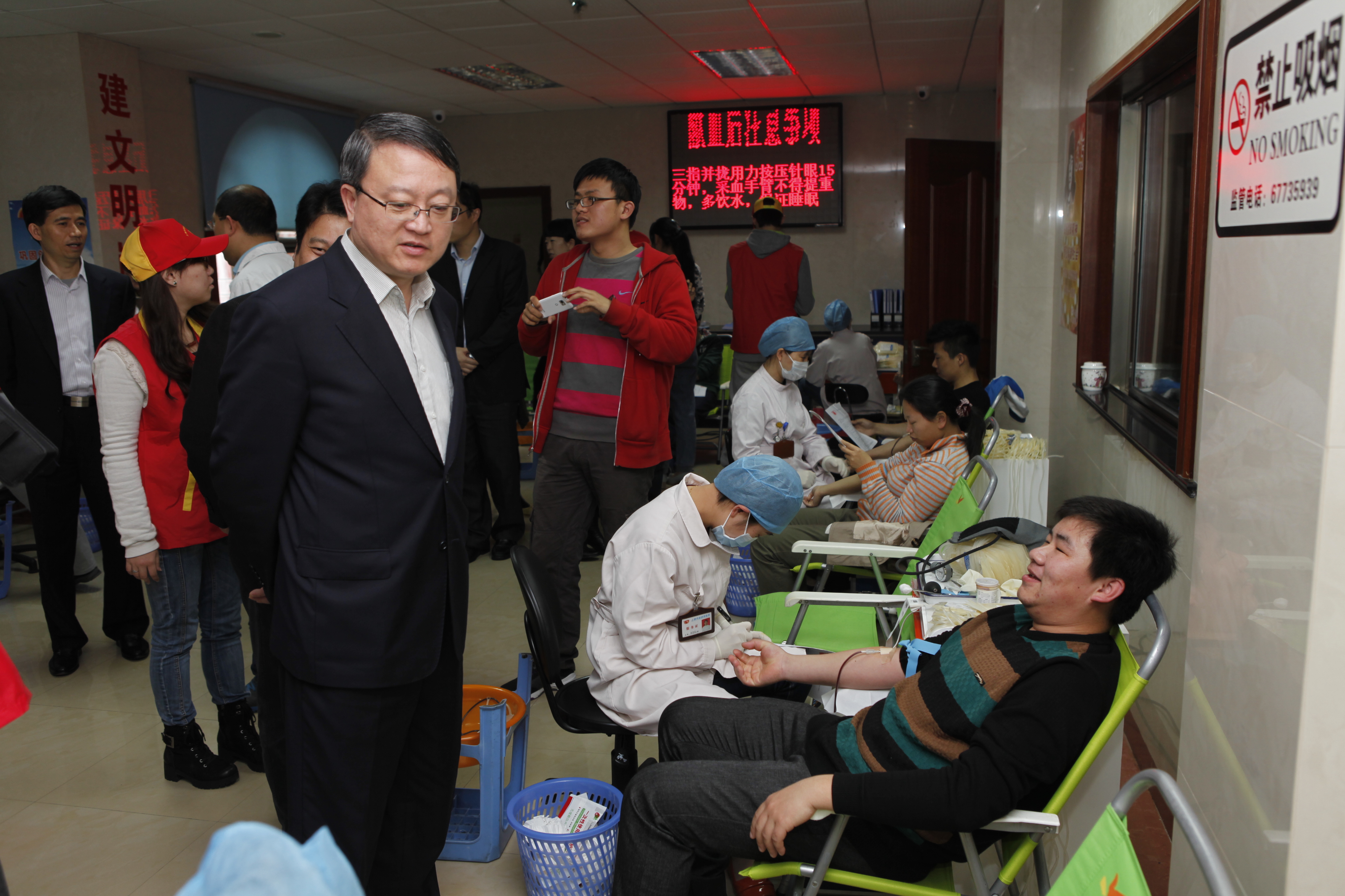 上午8点,同学们在血站工作人员和学院志愿者的组织下,有序的开始体检和采血。校党委书记滕建勇、副校长孙培雷,机械工程学院党委书记虞蓉、副书记梅元媛老师亲临献血现场,关心慰问无偿献血的同学。辅导员老师始终在现场守候,叮嘱大家多注意休息并补充营养,勉励同学们勇敢面对。