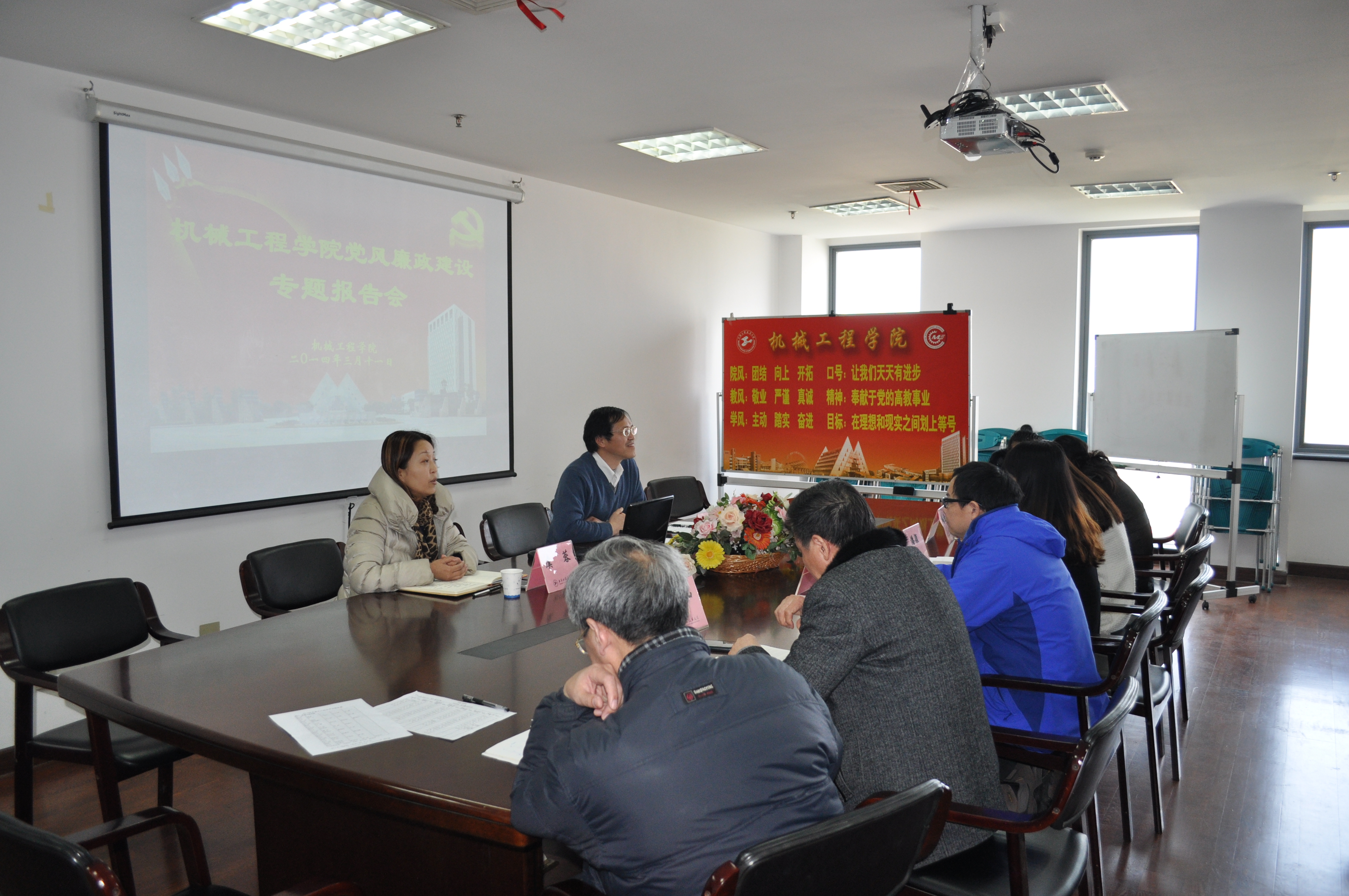 3月11日下午,机械工程学院在行政楼1208举办题为“党风廉政建设”专题学习报告会。报告会由校纪委副书记、监察处处长徐国祥同志主讲,机械工程学院党委书记虞蓉主持。