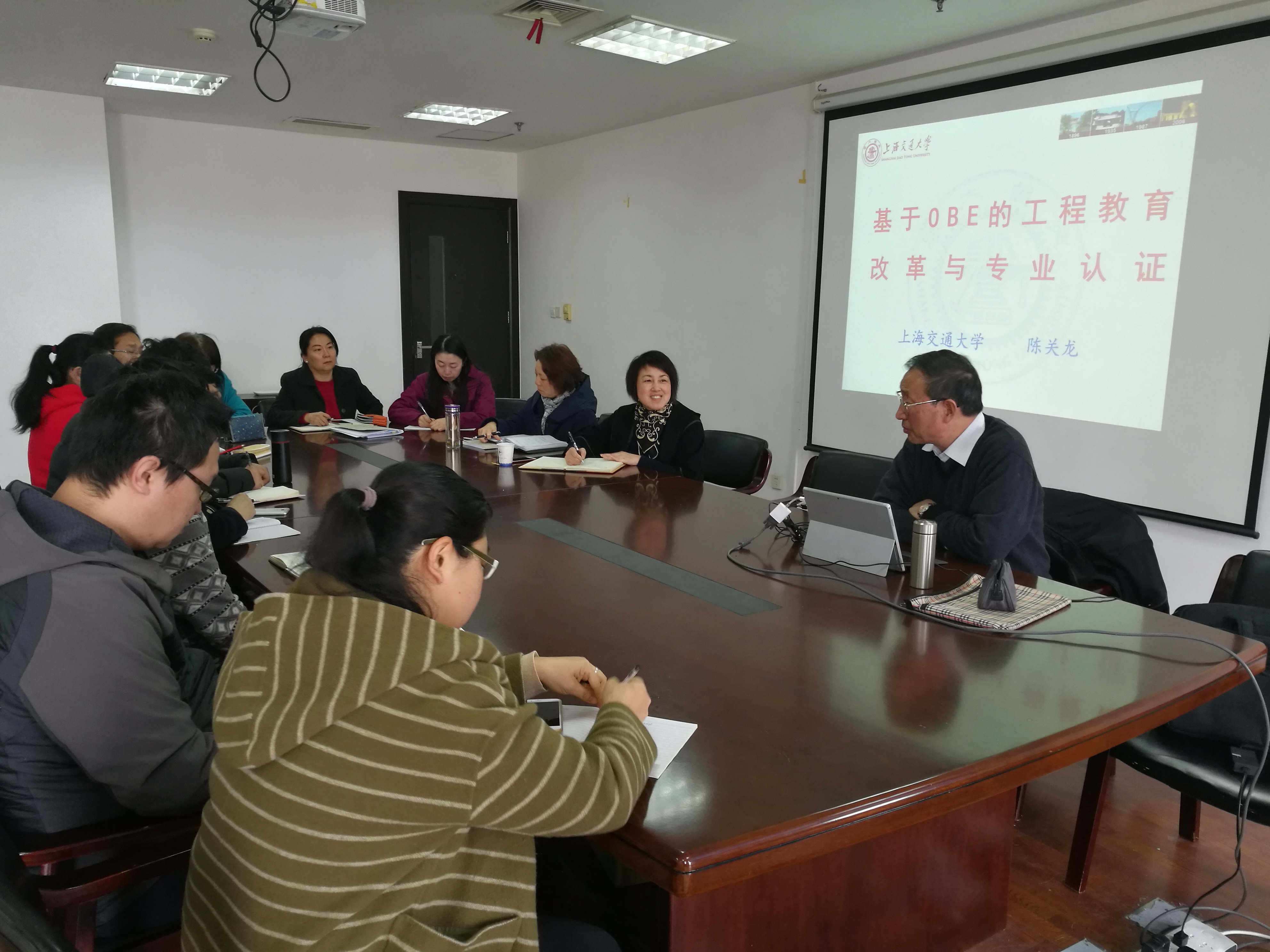现场气氛活跃,与会教师结合我院工程教育认证工程的实际,在OBE理念、资料准备和目标指标等方面与陈关龙教授进行了互动。