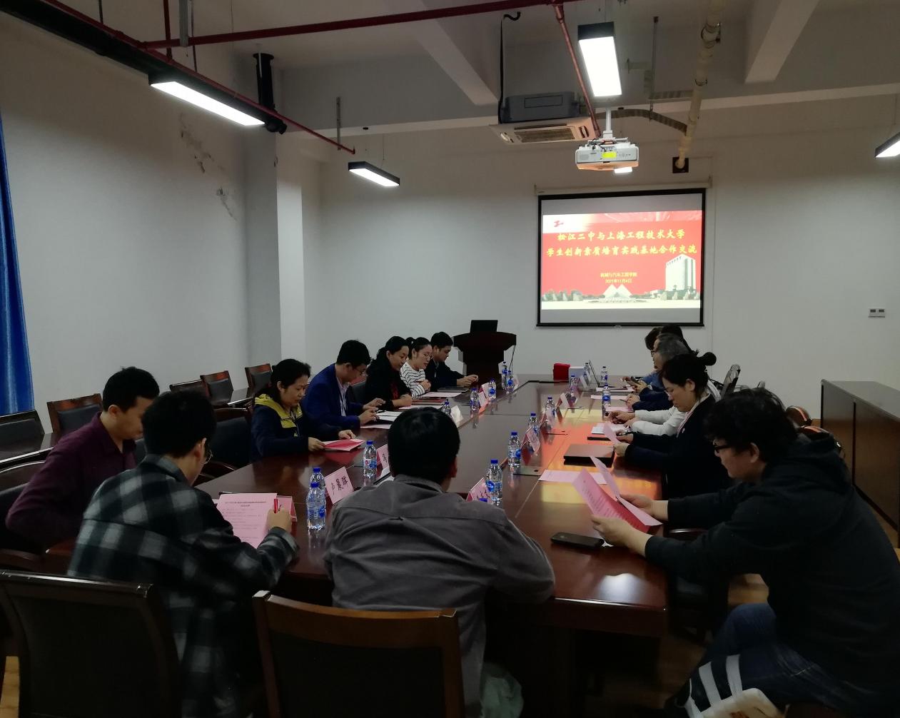 11月4日下午,为全面推动创新型人才的培育,大力促进松江区中学生素质教育和创新精神的培育力度,PP电子游戏网站(以下简称“机汽学院”)在现代交通中心8B604会议室与松江二中进行学生创新素质培育实践基地合作交流。机汽学院党委书记虞蓉、松江二中副校长余方喜、机汽学院机械电子工程系(以下简称“机电系”)主任熊根良、机汽学院实验中心主任马西沛、机汽学院机电系教师代表以及松江二中教师代表出席交流会。交流会由机汽学院机电系副主任朱姿娜主持。