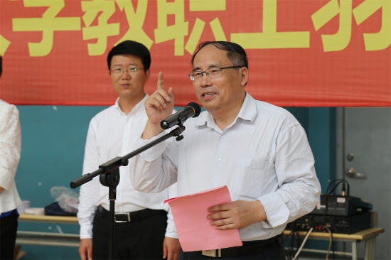 王彦收老师代表参赛选手、陈皓杰同学代表裁判分别进行宣誓。校工会常务副主席沈海庆宣布比赛开幕,由夏斯云副书记开球拉开比赛序幕。