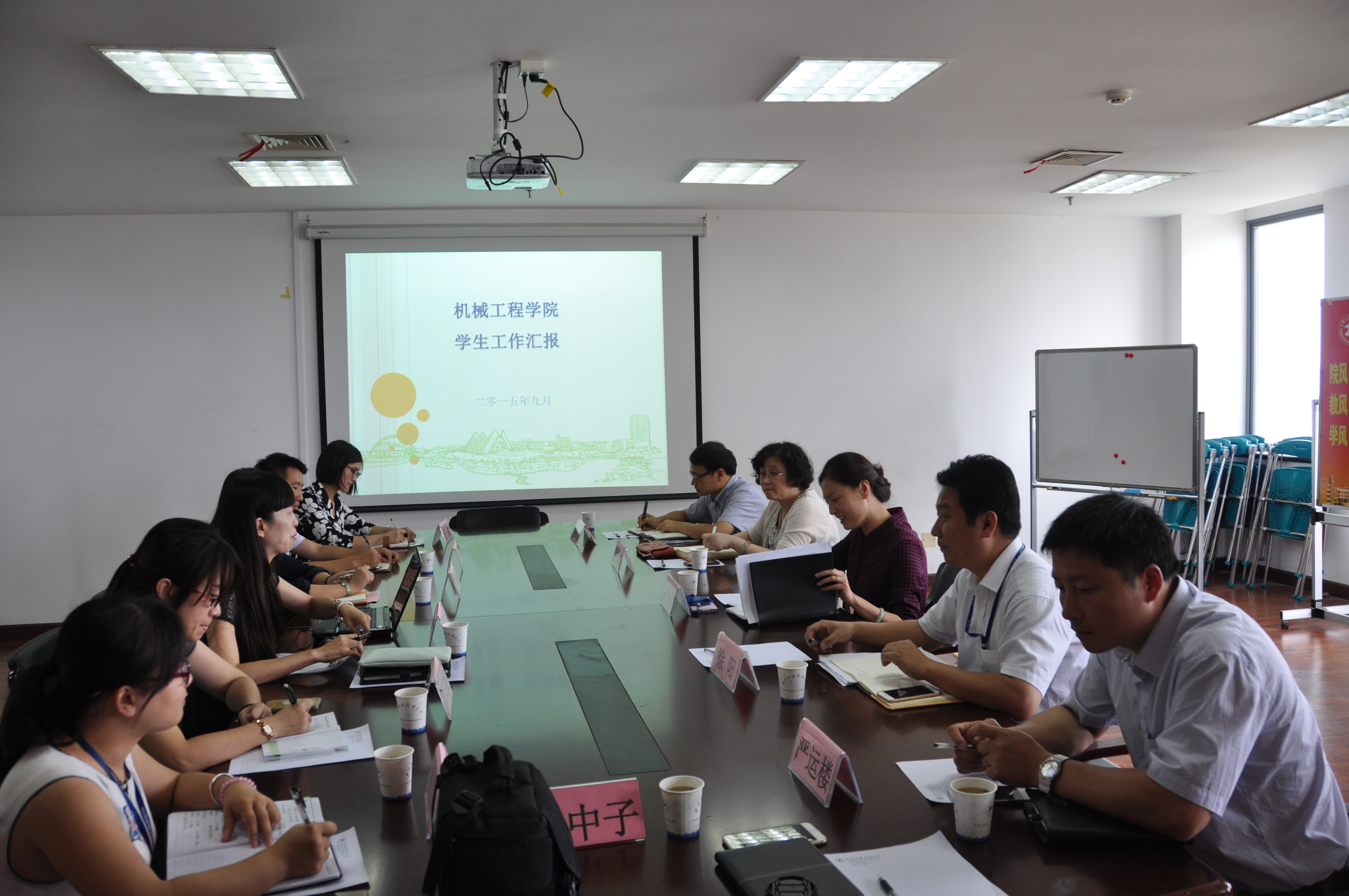9月17日下午,校党委副书记兼副校长裴小倩,学生工作部(处)长徐阳,副处长黄文洁、严运楼,以及学生工作部(处)相关老师到机械工程学院调研学生工作,学院党委副书记梅元媛及全体辅导员参加了本次调研会。