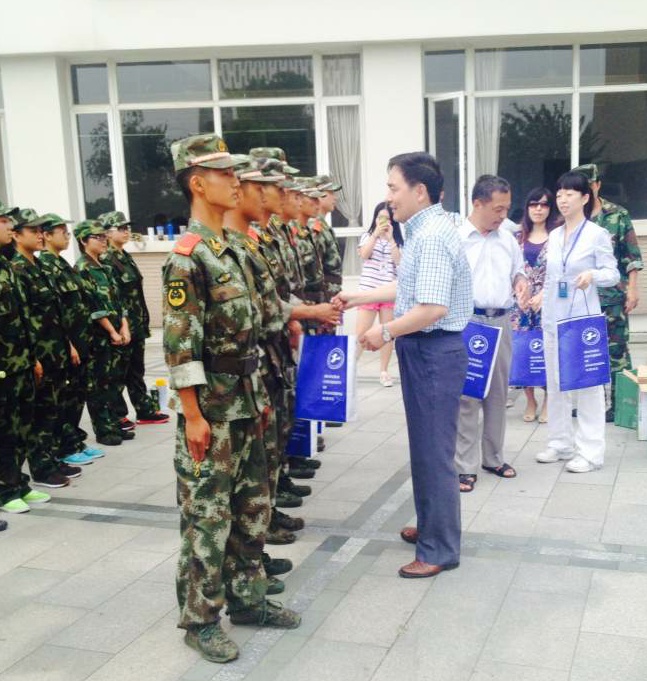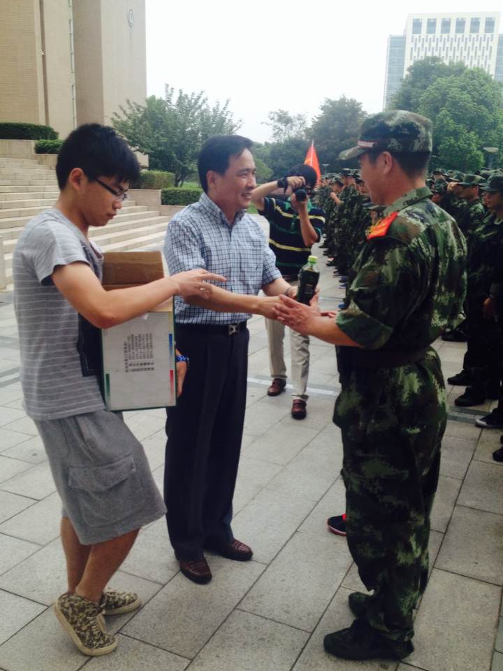 紧接着,学院领导们与一营全体教官亲切握手表达感谢并向他们送上了慰问品以表达学院对他们的感谢之情。营长代表全体教官感谢学院领导的关心,他表示全体教官一定会尽全力带好队伍,为学院争光。