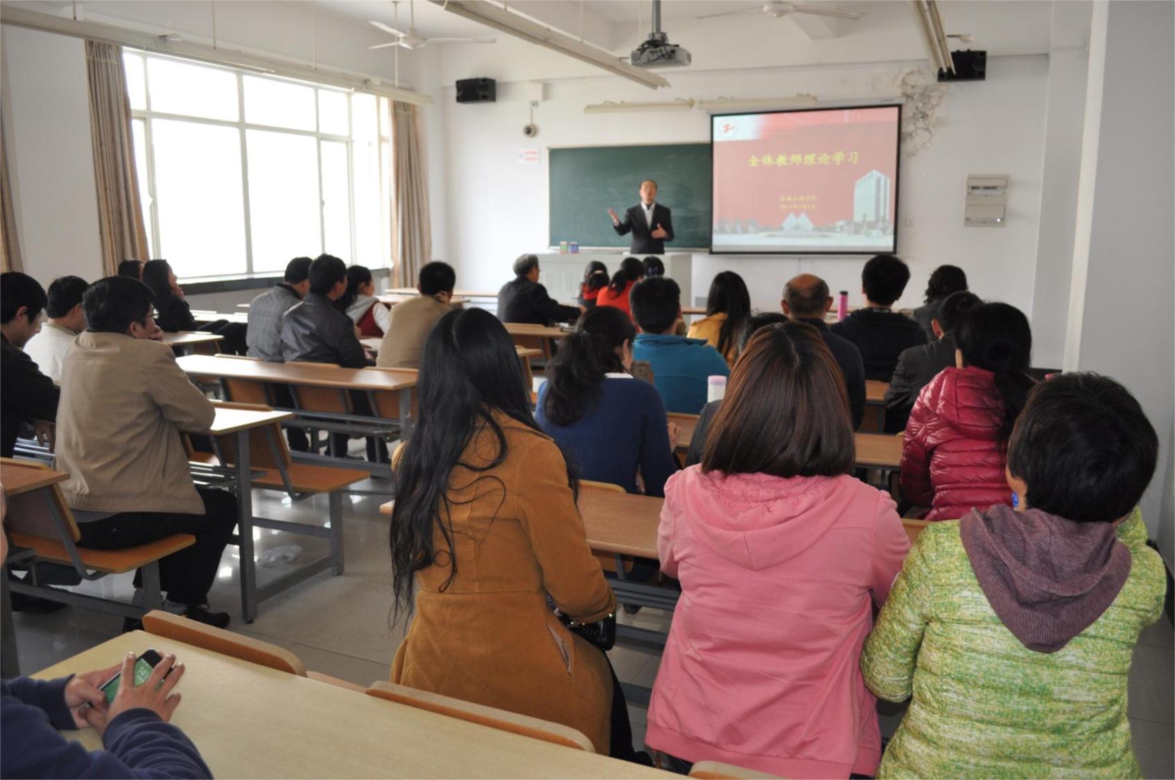 在会上,学院优秀教师代表陆文老师作了题为“如何提高教师教育教学能力”的专题报告。他结合自己的教学经验从增强责任意识、注重教学内容、激发互动效应和尊重理解学生等四个方面深入浅出的对高校教师应当如何提高教师教育教学能力进行报告。倡议老师们要以身作则,用自己的实际行动影响学生;呼吁教师要热爱自己的工作岗位,把教育工作作为自己一生的事业;主张从改变学生学习态度入手,培养学生主动思考的意识;建议老师们要以多领域知识为纽带,在最短的时间内获取学生的尊重与信服。陆老师对完美教学效果的不懈追求和努力感染了在场的所有老师,另老师们十分敬佩。