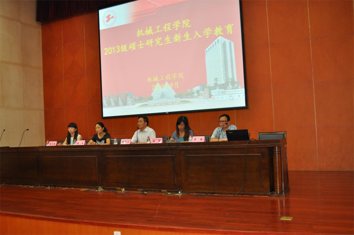 9月10日,机械工程学院在行政楼B301隆重举行了2013级硕士研究生入学教育。出席此次会议的有机械工程学院院长程武山、学院党委书记虞蓉、副院长茅健、副院长潘颖、党委副书记梅元媛、研究生教学秘书及辅导员和2013级全体研究生。会议由副院长茅健老师主持。