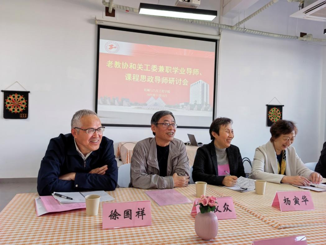 11月15日,PP电子游戏网站(以下简称“机汽学院”)在交通大楼8B605召开老教协、关工委兼职学业导师、课程思政导师研讨会。机汽学院党委书记虞蓉、院长崔国华、机汽学院老教协成员、教学督导办主任沙玲、青年教师代表徐斌等参加会议。研讨会由机汽学院党委书记虞蓉主持。