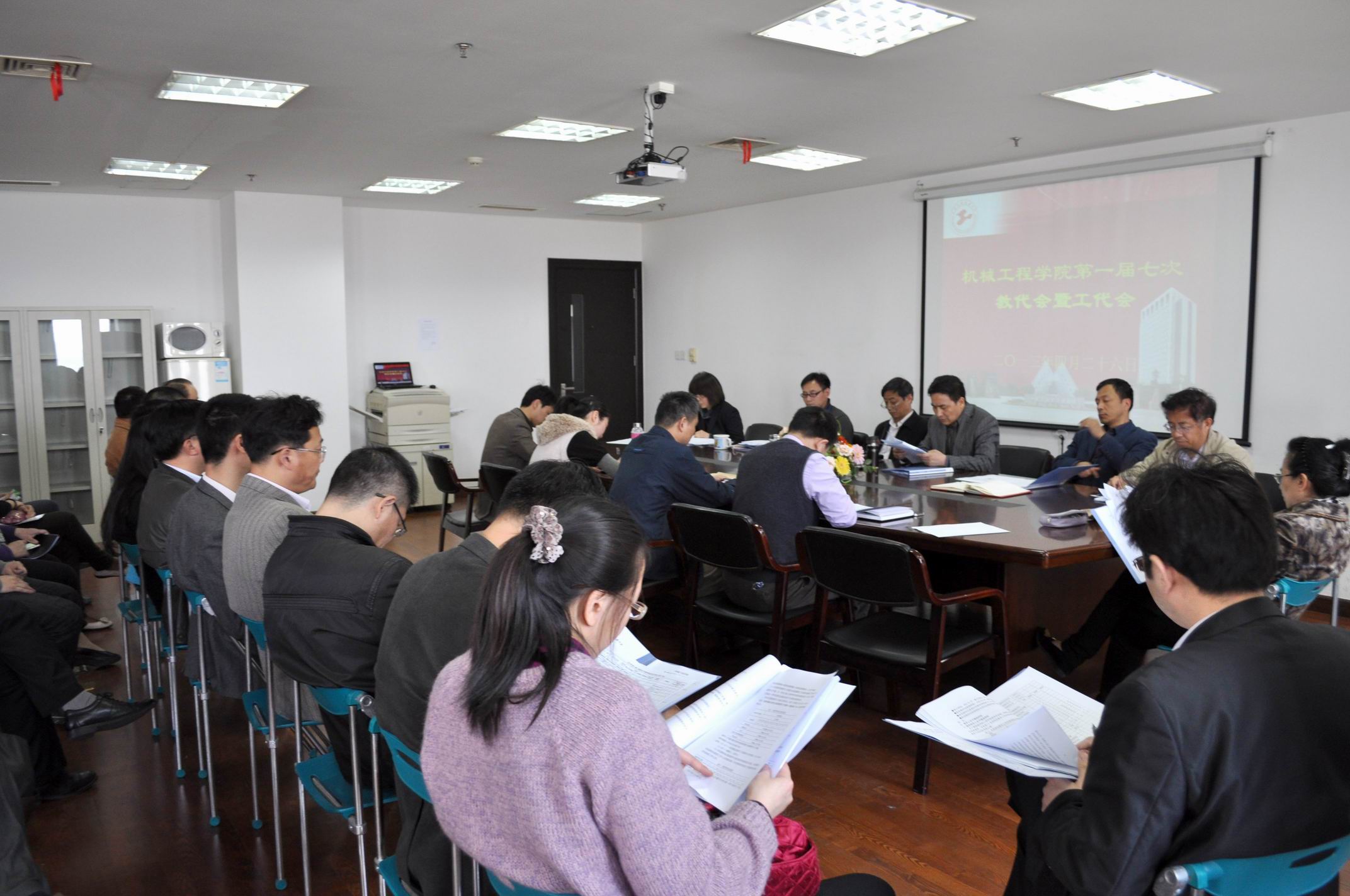 4月26日下午,机械工程学院在学院会议室召开了学院第一届七次教代会。首先由大会主持人学院工会主席周玉凤宣布本次教代会的会议议程和安排。接着程武山院长作了《机械工程学院2012年度工作报告》,他在工作报告中从六个方面回顾了2012年学院中心工作取得的成绩,也对学院新一年工作提出更高的要求。接着学院办公室副主任史志军作了《2012年学院财务工作报告》,工会主席周玉凤作了《2012学院工会工作报告》。