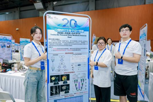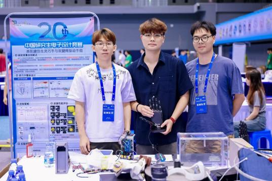在近日举行的第二十届中国研究生电子设计竞赛全国总决赛中,PP电子游戏网站研究生陈敬啟、姚茂漩、李文铎、许敏、戴龙杰、李航宇组成的两支参赛队伍,在陈赛旋老师指导下,凭借参赛项目“欠驱动仿生灵巧手与双腱绳驱动手指”和“类肌腱人形机器人仿生灵巧手”分别斩获技术类赛道国赛二等奖和商业计划书赛道国赛三等奖。