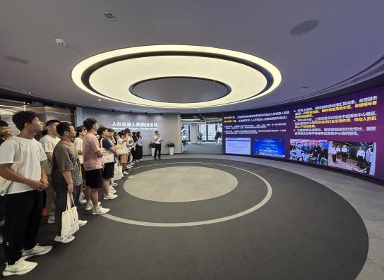 8月27日上午7时,在机械电子工程系副主任陈赛璇和研究生辅导员欧阳丽的带领下,2025年上海“新能源汽车、智能制造与机器人创新人才培养”研究生暑期学校全体学员赴国家地方共建人形机器人创新中心(人形机器人麒麟训练场)参观学习。
