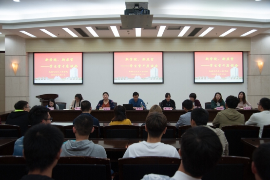 2018年10月17日晚于图文信息中心第三报告厅,PP电子游戏网站召开“新学院·新展望”学生骨干座谈会,PP电子游戏网站副书记王东阳老师、学办全体辅导员和班团骨干参与会议,座谈会由学办主任聂红老师主持。