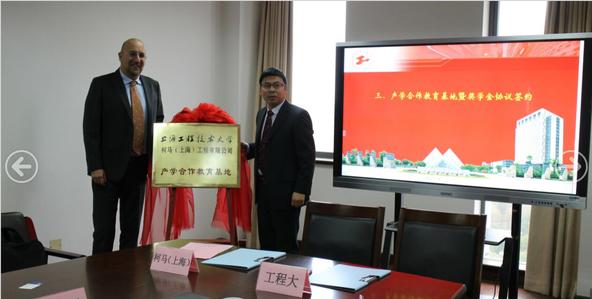 在校企双方见证下,PP电子游戏网站院长方宇与柯马(上海)工程有限公司总经理Mauro Anselmetto进行了产学合作、柯马奖学金签约并为产学合作教育基地揭牌。