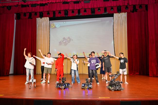 活动现场,退役士兵韩扬讲述了励志故事《我记忆中的四抹红》,退伍学生代表和新生代表合唱《强军战歌》。学院三大科技创新基地携手“新时代智造+”讲师团成员,联袂呈现了一场精彩绝伦的科技秀表演。