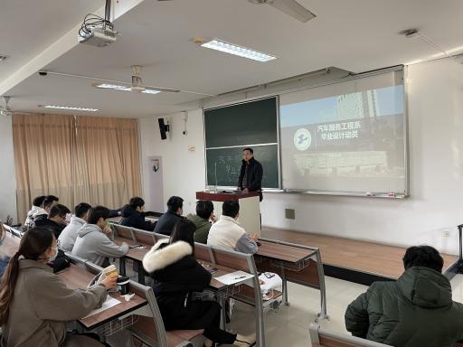 会议由汽车服务工程系系主任马其华老师主持,他首先向同学指出毕业设计(论文)是整个教学计划中分所占比例最高的一个环节,所有同学必须认真对待毕业设计(论文)。同时还强调了最后一学期有在单位进行实习的同学,因为实习工作而忽视毕业设计(论文)的任务,他要求同学们要正确处理这方面的关系,合理调整时间安排,不能以实习等理由不服从指导教师安排。指出了优秀的毕业设计(论文)是成为优秀的研究生和优秀的员工的基石。随后,马其华老师重申了毕业设计的严肃性,对毕业答辩不合格,采取缓答辩措施,与毕业条件直接挂钩,给同学们敲响了警钟。最后,汽车服务工程系系副主任骆佼老师为同学们介绍了毕业论文(设计)的流程规定和基本要求,并再次强调了毕业设计的重要性与各个时间节点,并对一些特殊情况进行了说明。