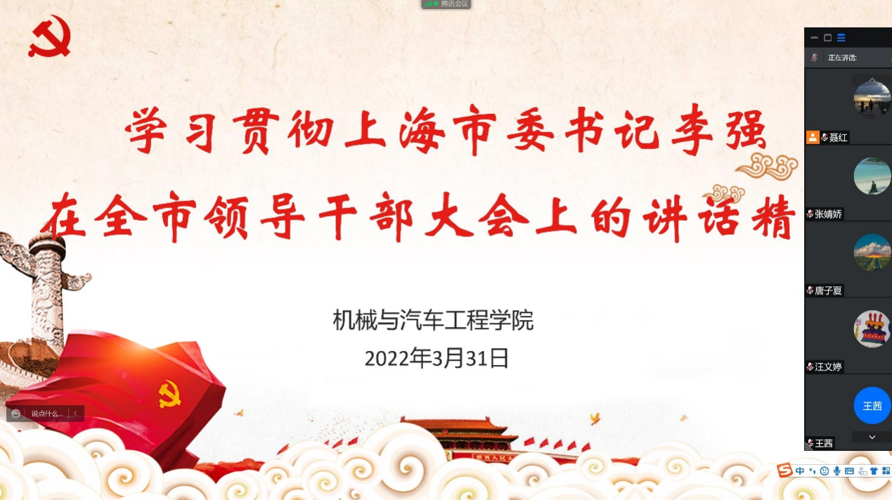为深入贯彻落实市委、校党委疫情防控决策部署,3月31日下午,PP电子游戏网站在线专题学习上海市委书记李强在全市领导干部大会上的重要讲话。学院全体辅导员参加了会议,会议由学生工作办公室主任聂红老师主持。