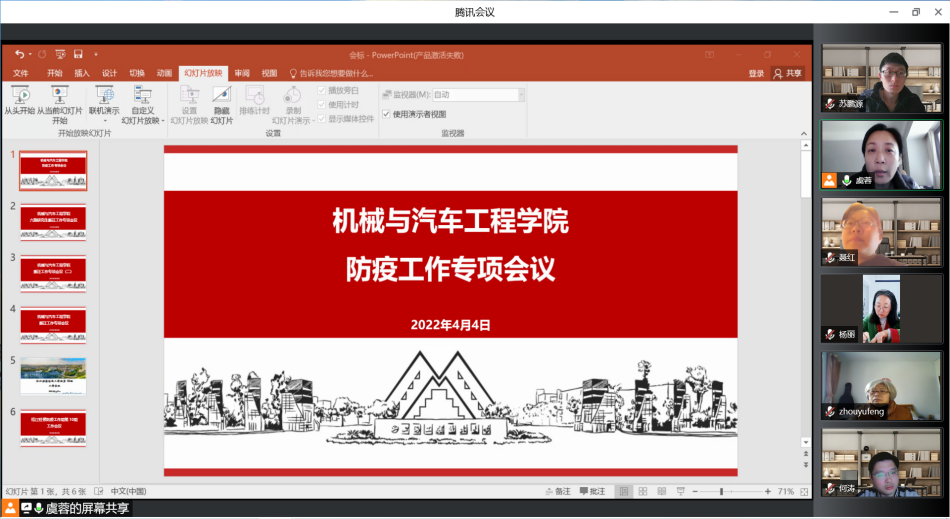 为扎实有序推进落实上级有关疫情防控工作的部署安排,积极应对疫情的影响,确保在疫情防控的同时,顺利开展学院各项工作,PP电子游戏网站党委于4月4日上午8:30线上召开学院疫情防控专项工作会议,学院党政班子成员、工会主席、党政办主任、全体辅导员与会,本次会议由学院党委书记虞蓉主持。