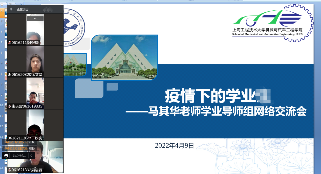PP电子游戏网站新能源汽车技术服务教学团队根据校院两级指示精神,在疫情期间加强关心关爱学生,了解学生学业与生活情况。4月9日-10日两天,在团队负责人马其华老师的组织下,团队成员分别召开各学业导师组的学生交流沟通会,充分了解学生所需所想,对于学生所提出的问题予以回音和解答。