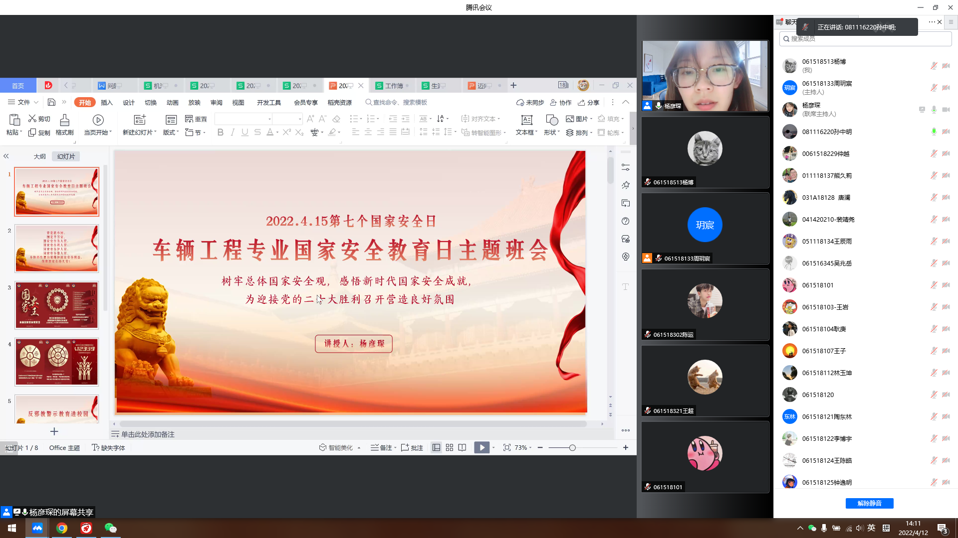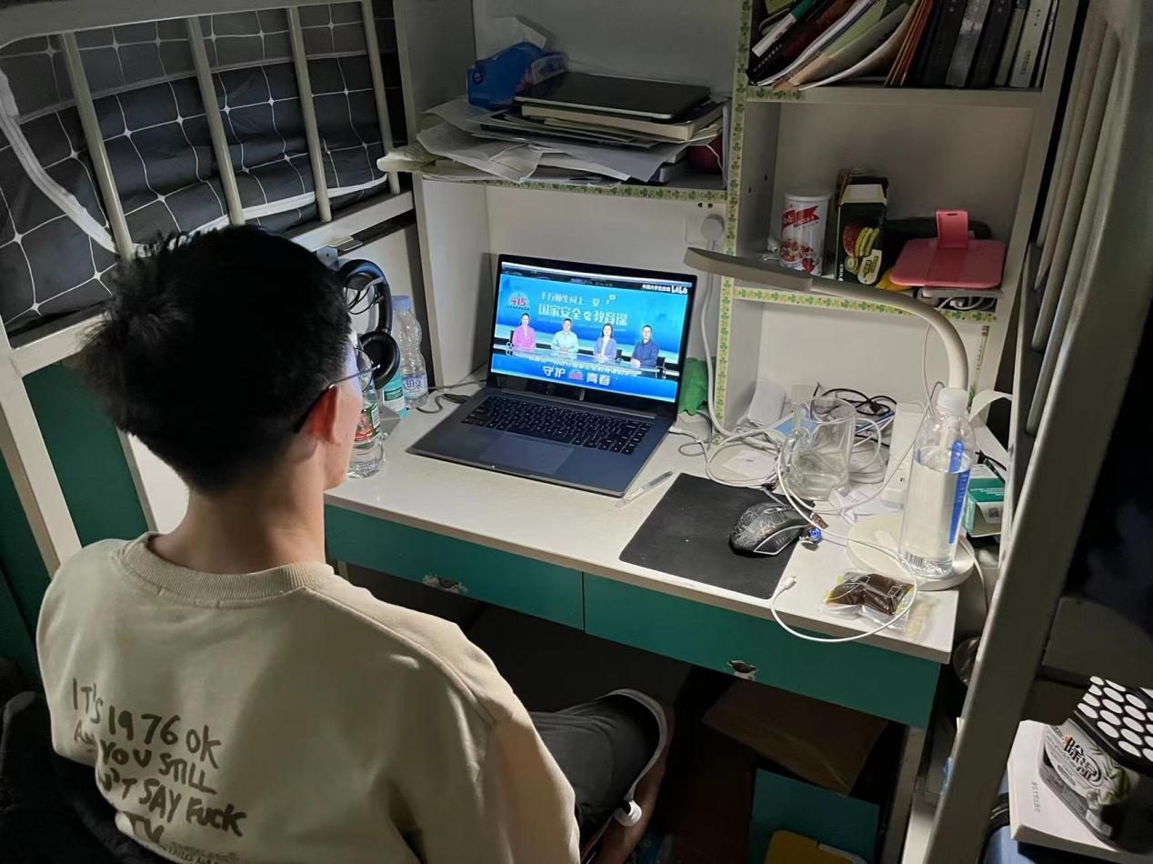 4月15日是第七个“全民国家安全教育日”。为深入学习贯彻习近平新时代中国特色社会主义思想,坚持总体国家安全观,着力防范化解重大风险,普及学生的国家安全意识,营造良好维护国家安全责任的氛围,PP电子游戏网站组织学生“同上一堂国家安全教育课”,在学生群体中扎实开展国家安全宣传教育活动。通过中国大学生在线视频号、快手、抖音、B站、微博等平台,同学们在易班工作站、学生宿舍等场所,错峰观看学习了本次国家安全教育公开课。