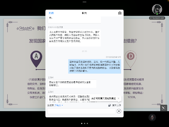 公开课后,PP电子游戏网站通过易班、程园机械汽车人微信公众号、开设国家安全教育专题专栏,进一步加强在学生群体中的国家安全教育宣传。辅导员杨彦琛组织开展主题班会,向同学们介绍“什么是国家安全”,为什么要设立国家安全日,“十个坚持”、“五个统筹”;以及大学生如何维护国家安全。辅导员苏鹏源组织学生积极参与“国家安全日”互动,组织“国家安全知识线上竞答”,用充满趣味性和互动体验性的学习方式让学生通过云端知识大比拼进一步巩固公开课学习效果。同学们纷纷表示,通过学习总体国家安全观,进一步认识到维护国家安全的重要性,将用实际行动维护国家安全。