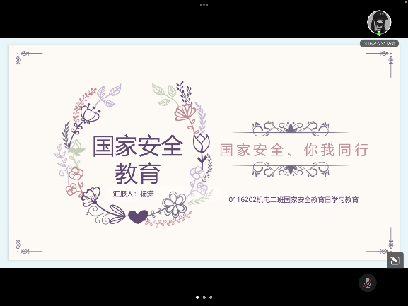 机器人工程专业曹庆丰同学在学习后说到:“4月15日,是国家安全教育日,而就在这次通过学院组织的系统学习,我全面的了解到了生物安全,技术安全,军事安全等等对国家安全的重要性。同时,我也深切了解到了,自己作为一名大学生在维护国家安全方面负有的责任和使命。在今后的学习和生活中,我会时刻谨记自己的初心和使命。”