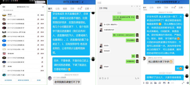 面对突发的疫情,机汽学院25个教学团队所有导师肩负起应有的责任,除了在学业上给学生指导,积极引导学生坚定疫情可防可控的信心,提醒学生注重个人防护,客观科学的认识疫情;对学生及存在困难和情绪的学生进行心理疏导,及时积极的解决反馈问题,让全体学生在对导师充满依赖感的同时,增强对学校的归属感。