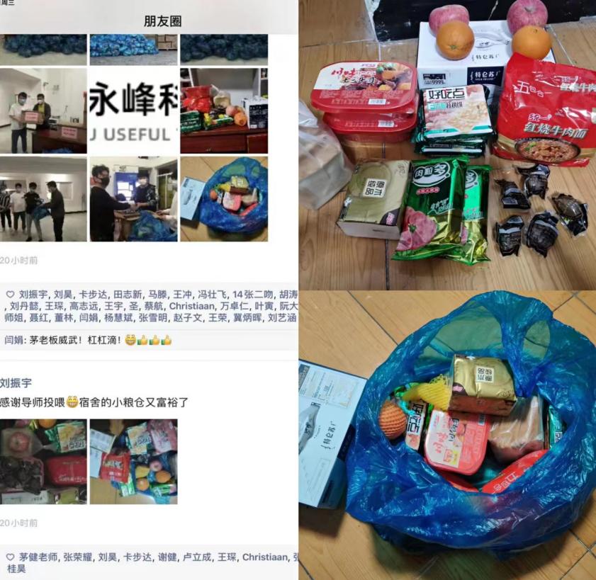 航空航天智能制造及先进工艺团队在与带教研究生交流中得知,六期研究生的生活物资相对紧缺,立即采购了一批生活物资,并由团队相关老师与学院在校值班老师进行对接,经过24小时严格消杀后,顺利送到了研究生手中。研究生们纷纷表示感谢和感动,感谢这一份关爱与帮助,感动这一份挂念与关怀。