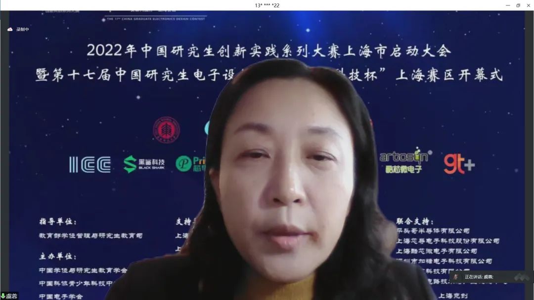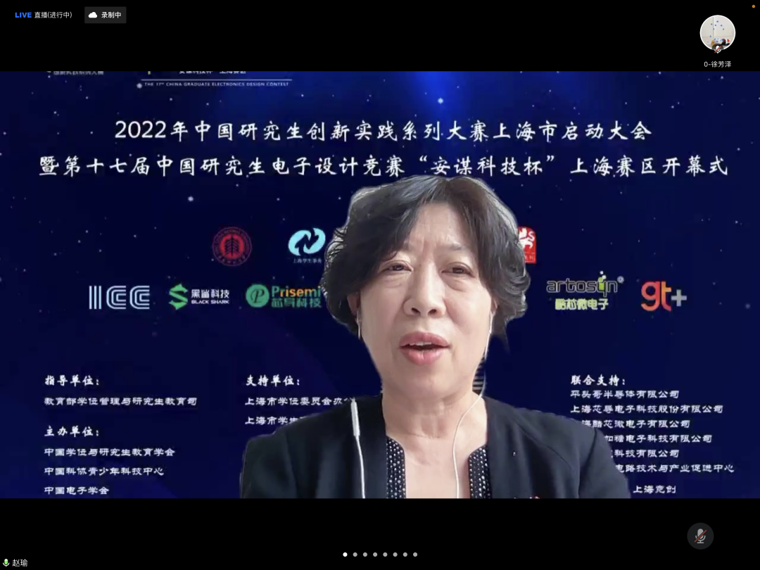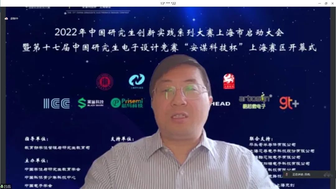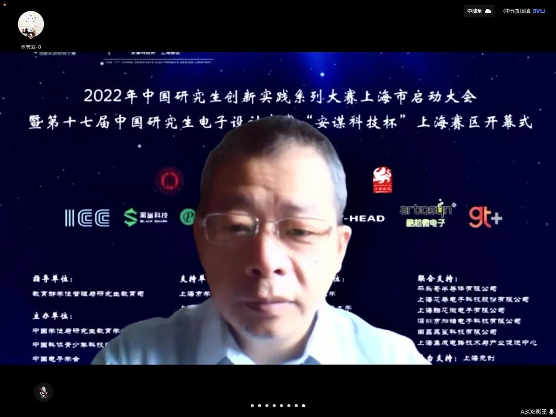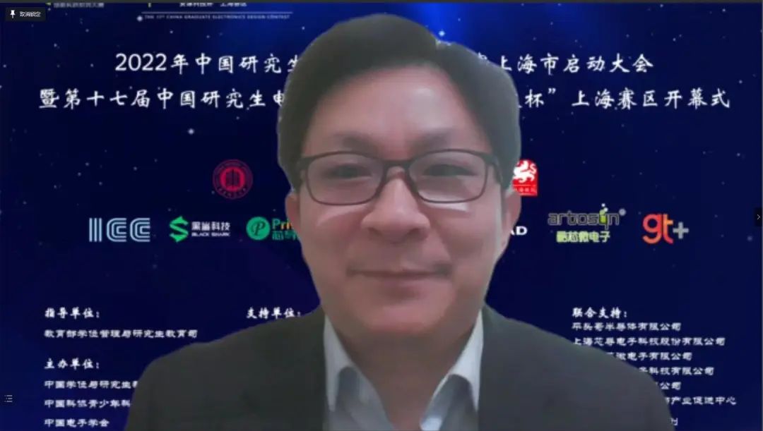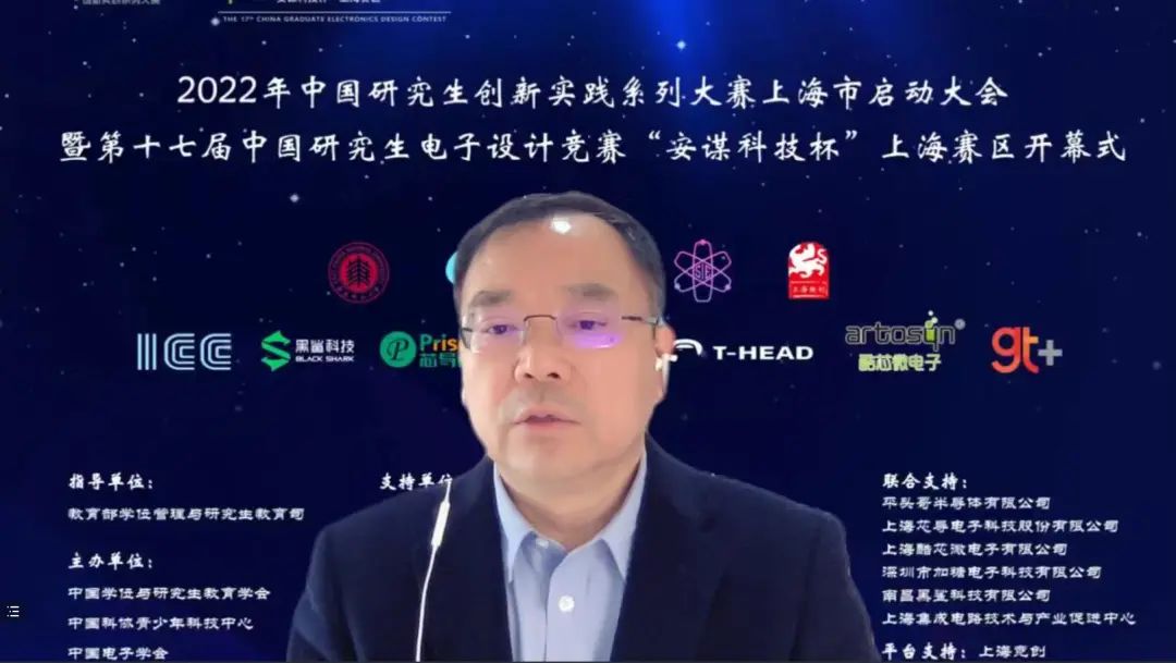 4月24日上午,2022年中国研究生创新实践系列大赛上海市启动大会暨“兆易创新杯”第十七届中国研究生电子设计竞赛“安谋科技杯”上海赛区启动仪式在腾讯会议举行。大会由上海市电子学会、华东师范大学承办,中国学位与研究生教育学会、中国电子学会、上海市教委、上海市学位办、上海市学生事务中心、上海市电子学会、上海市就业促进中心、上海市大学生科技创业基金会、华东师范大学相关领导、沪上研究生培养单位负责人、赛事专家、企业代表、学生代表汇聚“云”端,出席本次启动仪式。仪式由华东师范大学通信与电子工程学院院长吕岳主持。