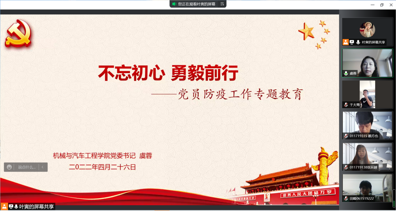 为切实发挥广大党员在疫情防控工作中的重要作用,积极引导党员正确认识疫情形势,带头落实落细各项疫情防控举措,4月26日下午,PP电子游戏网站党委线上举行学生党员防疫工作专题教育活动。学院党委书记虞蓉、学院组织员、学生支部书记、学生党员近280人参加会议。