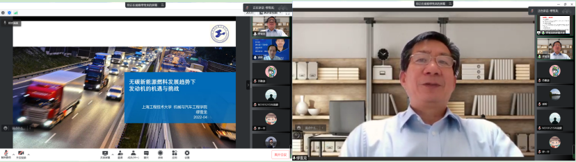 4月27日上午9点半,缪雪龙教授以《无碳新能源燃料发展趋势下发动机的机遇与挑战》为题,重点介绍了氢和氨无碳燃料与碳氢燃料相比的差异,并从实际出发聚焦氨燃料在发动机上应用技术路线研究。缪教授指出,面临碳达峰碳中和的双碳战略目标,全球汽车动力电动化浪潮高涨,对传统燃油发动机提出了严苛要求。缪教授强调,最有希望成为零碳燃烧的技术路线是,将部分氨通过催化裂解成氢和氮,然后与氨再混合后引入发动机进行燃烧。他指出,由于氨的抗爆性比汽油高,在火花点燃式发动机燃烧氨/氢混合气后不但实现了零碳排放,而且热效率高于传统汽油机。